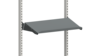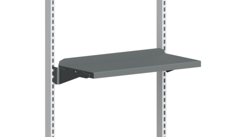 Hyllplan med raskant, som passar för verktyg och plastbackar. Hyllplanet monteras rakt eller vinklat på perforerade pelare. Hyllplanet är vändbart så att raskanten kan vara antingen utåt eller mot pelarna.