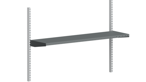 Packbordshylla inklusive konsoler för montering mellan perforerade pelare. Hyllplanet har hål i framkant för infästning av avdelare.Produktspecifikation - Packbordshylla 1400x360 mm - Grå