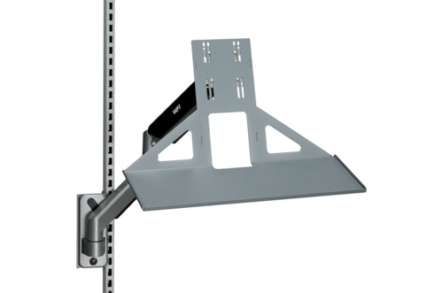 Tangentbordshållare på gasfjäderarm kompatibel med vesa 75x75 eller 100x100 mm cc. Gasfjäderarm med ställbar tilt som klarar en belastning på upp till 15 kg. Fästes på perforerad pelare med stolpfäste. Stolpfäste ingår.