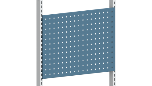 Perforerad verktygspanel för montage på perforerade pelare. Panelen ligger tajt mot pelaren för att minska skrammel och den bygger 14 mm framför den perforerade pelaren. Plåttjocklek 1,5 mm, håldimension 9x9 mm och hålavstånd c/c 38 mm.