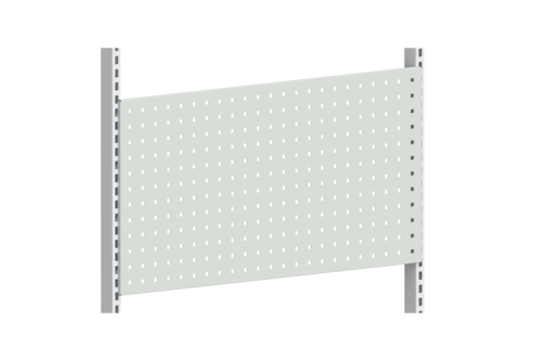 Perforerad verktygspanel för montage på perforerade pelare. Panelen ligger tajt mot pelaren för att minska skrammel och den bygger 14 mm framför den perforerade pelaren. Plåttjocklek 1,5 mm, håldimension 9x9 mm och hålavstånd c/c 38 mm.