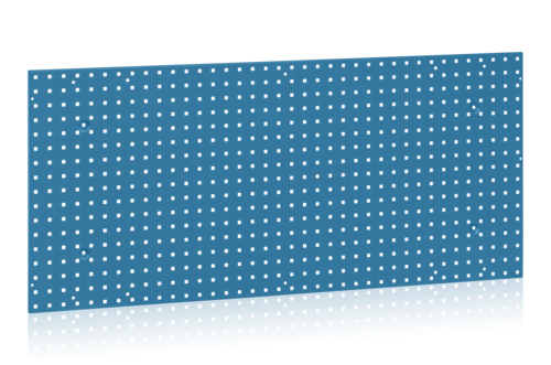 Perforerad panel för väggmontage. Försänkta hål för montering på vägg med regelavstånd 600 cc. Verktygskrok kan appliceras i skarv mellan två väggmonterade plåtar. Plåttjocklek 1,5 mm, hålavstånd c/c 38 mm. Blålackerad, RAL 5009.
