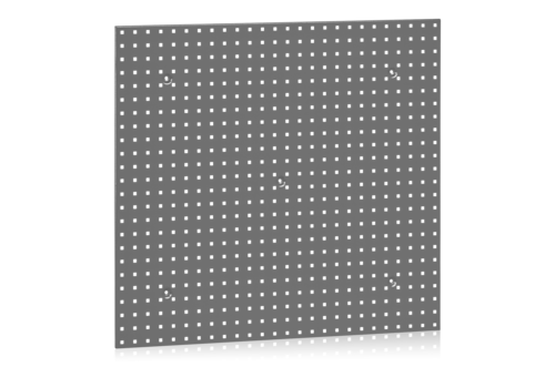 Perforerad panel för väggmontage. Försänkta hål för montering på vägg med regelavstånd 600 cc. Verktygskrok kan appliceras i skarv mellan två väggmonterade plåtar. Plåttjocklek 1,5 mm, hålavstånd c/c 38 mm. Grålackerad, NCS S 6502B.