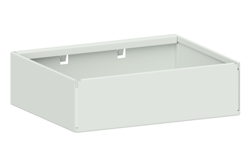 Öppen låda i plåt för förvaring av exempelvis mindre verktyg. Hängs in i perforerad panel med hjälp av krokar som enkelt fälls ut för hand. Passar alla våra perforerade paneler.