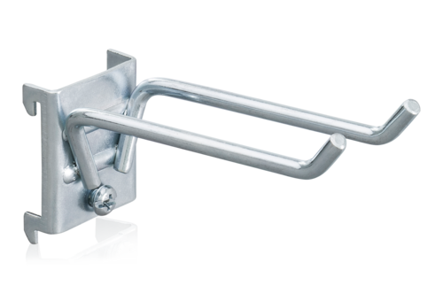 Dubbelkrok till perforerad panel för verktygsupphängning. Avsedda för håldimension 9x9 mm, hålavstånd c/c 38 mm. Säljes i 5-pack.