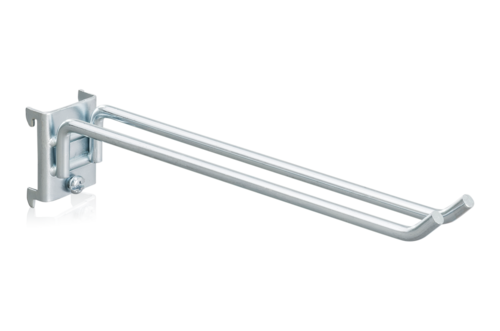 Dubbelkrok till perforerad panel för verktygsupphängning. Avsedda för håldimension 9x9 mm, hålavstånd c/c 38 mm. Säljes i 5-pack.