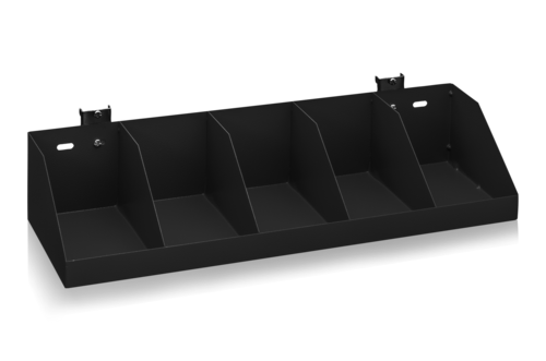 Hyllfack för verktygstavla/perforerad panel 38 mm/cc. Perfekt för förvaring av skruvar, pennor och smådetaljer. Enkelt att flytta runt och byta plats på. Indelat i 5 fack, 5 cm breda.