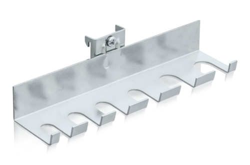 Ringnyckelhållare, med plats för 6 stycken ringnycklar, till perforerad panel för verktygsupphängning. Avsedda för håldimension 9x9 mm, hålavstånd c/c 38 mm. Säljes styckvis.