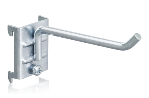 Upphängningskrok till perforerad panel för verktygsupphängning. Avsedda för håldimension 9x9 mm, hålavstånd c/c 38 mm. Säljes i 5-pack.