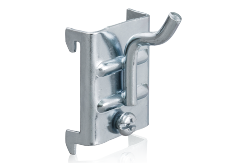 Upphängningskrok till perforerad panel för verktygsupphängning. Avsedda för håldimension 9x9 mm, hålavstånd c/c 38 mm. Säljes i 5-pack.