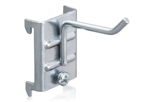 Upphängningskrok till perforerad panel för verktygsupphängning. Avsedda för håldimension 9x9 mm, hålavstånd c/c 38 mm. Säljes i 5-pack.