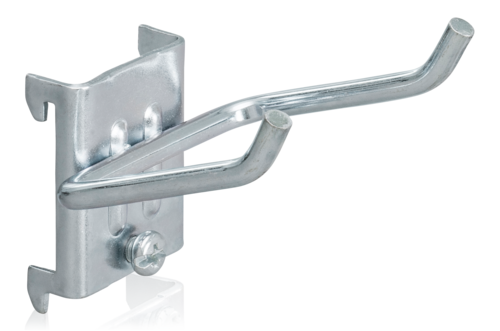Vinkelkrok till perforerad panel för verktygsupphängning. Avsedda för håldimension 9x9 mm, hålavstånd c/c 38 mm. Säljes i 5-pack.