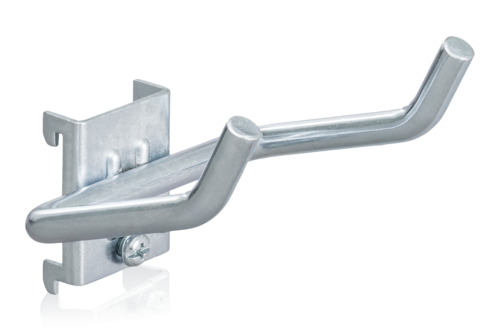 Vinkelkrok till perforerad panel för verktygsupphängning. Avsedda för håldimension 9 mm, hålavstånd c/c 38 mm. Säljes i 5-pack.