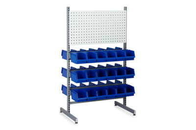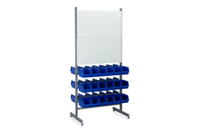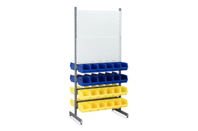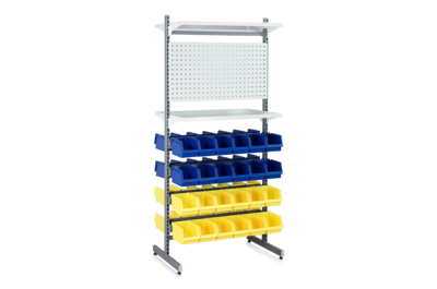 Samtliga av våra dubbelställ är tillverkade i en perforerad rörprofil och är samma typ av pelare vi använder till våra påbyggnader för arbetsbord. Därmed passar dubbelställen med hela vårt tillbehörssortiment som är 900 cc, allt från olika typer av perforerade paneler och hyllplan till backlister och plastbackar av olika slag. Här kan ni välja att köpa ett ställ i sin enkelhet och addera de tillbehör ni själva behöver, eller välja ett av våra kompletta ställ med olika kombinationer. Maxa ett dubbelställ med 72 backar eller bygg er egen lösning med plastbackar i kombination med perforerad panel för verktygsupphängning och hyllplan ovanför.