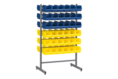För att hitta rätt typ av dubbelställ till er arbetsplats kan ni utgå från vilken typ av förvaring ni är ute efter. Behöver ni framför allt ett praktiskt ställ med plastbackar för smådelar och material eller är ni också ute efter en upphängningsyta för verktyg och dylikt? Förutom dubbelställ har vi även enkelställ som är att föredra om ni vill placera stället mot en vägg och andra typer av backställ. Fördelen med ett dubbelställ är att ni kan maximera samma typ av yta som ett enkelställ med dubbelt så många plastbackar, och att ni har åtkomst till materialet från båda sidorna. Hitta rätt typ av dubbelställ i vårt sortiment ovan eller kontakta oss för mer information!