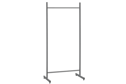 Fristående dubbelställ för placering på golv. Dubbelstället har dubbelfot och placeras med fördel fritt i lokalen för åtkomst till materialet från båda sidor. Går att bygga på och komplettera med valfria tillbehör efter behov, välj mellan allt från backlister och perforerade paneler till olika typer av hyllplan och plastbackar. Anpassat för vårt tillbehörssortiment c/c 900 mm. Tillverkat i perforerad rörprofil (50x25 mm) och pulverlackerat i grå NCS 6502B. Lastkapacitet 150 kg fördelad vikt.
