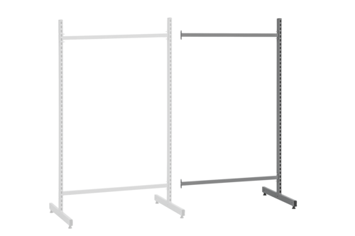Fristående dubbelställ (tilläggssektion) för placering på golv. Dubbelstället har dubbelfot och placeras med fördel fritt i lokalen för åtkomst till materialet från båda sidor. Går att bygga på och komplettera med valfria tillbehör efter behov, välj mellan allt från backlister och perforerade paneler till olika typer av hyllplan och plastbackar. Anpassat för vårt tillbehörssortiment c/c 900 mm. Tillverkat i perforerad rörprofil (50x25 mm) och pulverlackerat i grå NCS 6502B. Lastkapacitet 150 kg fördelad vikt.