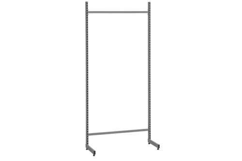Fristående enkelställ för placering på golv. Enkelstället har enkelfot och kan placeras både mot en vägg eller fritt i lokalen. Går att bygga på och komplettera med valfria tillbehör efter behov, välj mellan allt från backlister och perforerade paneler till olika typer av hyllplan och plastbackar. Anpassat för vårt tillbehörssortiment c/c 900 mm. Tillverkat i perforerad rörprofil (50x25 mm) och pulverlackerat i grå NCS 6502B. Lastkapacitet 100 kg fördelad vikt.