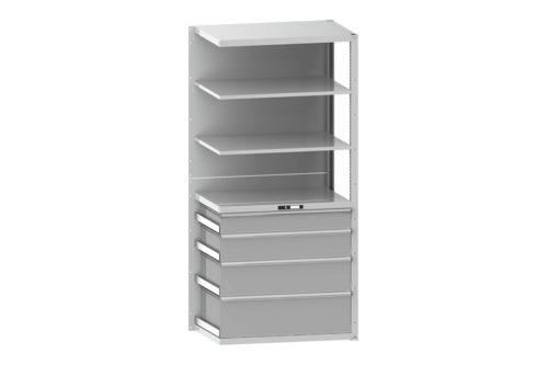 Det här är ett riktigt kraftigt system som går att modifiera i all oändlighet och bygga till mängder av konfigurationer genom att addera olika utdragbara lådor, hyllplan och tillbehör. Du kan även välja att lägga till dörrar, jalusi eller utdragbara kassetter. Lådorna har en lastkapacitet på 200 kg styck och är samma typ av lådor som används till LISTA’s lådhurtsar.