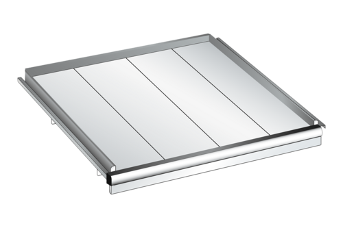 Utdragbar hylla anpassad för hyllsystem från LISTA. Hyllplanet är ställbart i höjd med intervaller på 25 mm och fungerar perfekt för förvaring av tunga komponenter. Insatserna är tillverkade i förzinkat stål. Den användbara ytan är 918x612 mm. Hyllan har en lastkapacitet på 200 kg.
