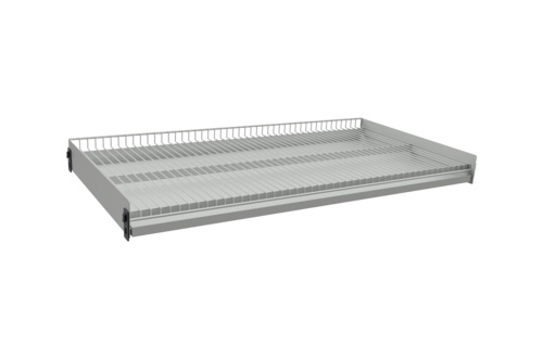 Trådhylla med dropplåt. Max belastning 50kg fördelad vikt.