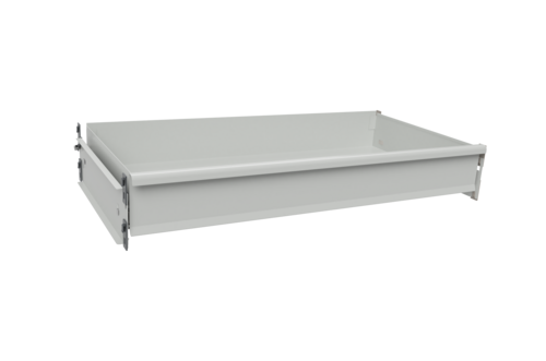 Utdragbar låda med expansioner som med fördel monteras under fast hyllplan. Max belastning 50 kg fördelad vikt. Lådans invändiga mått är 920x450x120 mm.
