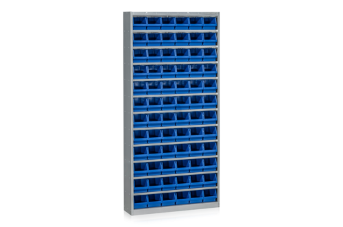 Komplett backskåp som skapar en flexibel förvaringslösning för de flesta miljöer. Med 11 flyttbara hyllplan och 72 plastbackar är det lätt att skapa ordning och en effektiv förvaring på arbetsplatsen.