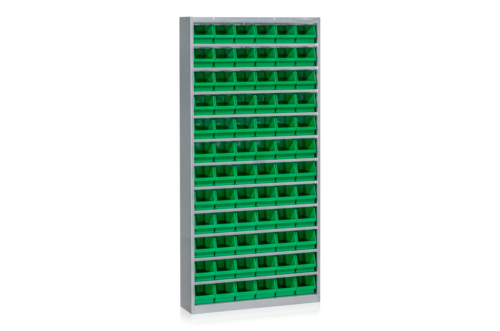 Komplett backskåp som skapar en flexibel förvaringslösning för de flesta miljöer. Med 11 flyttbara hyllplan och 72 plastbackar är det lätt att skapa ordning och en effektiv förvaring på arbetsplatsen.