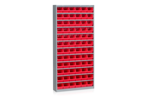 Komplett backskåp som skapar en flexibel förvaringslösning för de flesta miljöer. Med 11 flyttbara hyllplan och 72 plastbackar är det lätt att skapa ordning och en effektiv förvaring på arbetsplatsen.