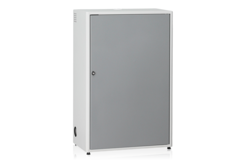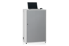 Golvstående datorskåp/arbetsstation för industri och lager. Helsvetsat och låsbart med nyckel. Skåpet har två perforerade hyllplan som är flyttbara i höjdled och skapar gott om plats för förvaring. Kabelgenomföring finns både i övre delen av skåpet och i sidoväggen.