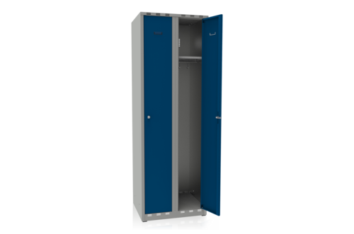 Helsvetsat och pulverlackerat klädskåp tillverkat av stålplåt. Lackeringen ger en stryktålig yta, vilket gör att klädskåpet lämpar sig speciellt bra i offentliga miljöer som till exempel gym, badhus, idrottsanläggningar, kontor och omklädningsrum på arbetsplatser.