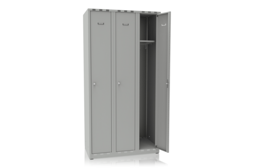 Helsvetsat och pulverlackerat klädskåp tillverkat av stålplåt. Lackeringen ger en stryktålig yta, vilket gör att klädskåpet lämpar sig speciellt bra i offentliga miljöer som till exempel gym, badhus, idrottsanläggningar, kontor och omklädningsrum på arbetsplatser.