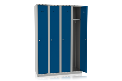 Helsvetsat och pulverlackerat klädskåp tillverkat av stålplåt. Lackeringen ger en stryktålig yta, vilket gör att klädskåpet lämpar sig speciellt bra i offentliga miljöer som till exempel gym, badhus, idrottsanläggningar, kontor och omklädningsrum på arbetsplatser.