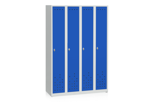 Helsvetsat och pulverlackerat klädskåp tillverkat av stålplåt. Lackeringen ger en stryktålig yta, vilket gör att klädskåpet lämpar sig speciellt bra i offentliga miljöer som till exempel gym, badhus, idrottsanläggningar, kontor och omklädningsrum på arbetsplatser.