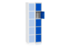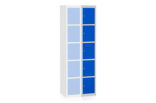 Småfackskåp flatpack tilläggssektion för bassektion, med plan botten utan tröskel och plant tak. Pulverlackerat och tillverkat av stålplåt. Lackeringen ger en stryktålig yta vilket gör att skåpet lämpar sig speciellt bra i offentliga miljöer som exempelvis gym, badhus, kontor och lagerplatser.