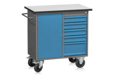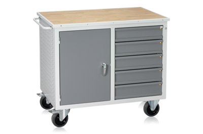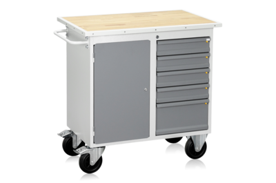 Vårt utbud av mobila arbetsbänkar innefattar flera varianter med olika typer av inredning, antal lådor och dörrar. Det finns två olika utgångslägen med olika lastkapacitet beroende på hur mycket ni kommer att belasta vagnen, antingen med en lastkapacitet på 200 eller 500 kg. En mobil arbetsbänk är perfekt för er som vill utöka förvaringen och samtidigt behålla flexibiliteten vid er arbetsstation. Samtliga av våra mobila arbetsbänkar är smidiga att flytta runt på, samtidigt som de är riktigt rejäla och robusta med stora förvaringsmöjligheter. Här får ni plats till det material ni behöver ha flexibelt inom räckhåll under arbetsdagen och en enkel arbetsyta i samma lösning.