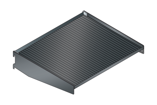 Hyllplan till verktygsvagn från LISTA. Plåthyllplanet har en ribbad gummimatta och monteras i spår på baksidan av vagnen. Hyllplanet har en användbar yta på 380x310 mm och lastkapacitet på 15 kg.