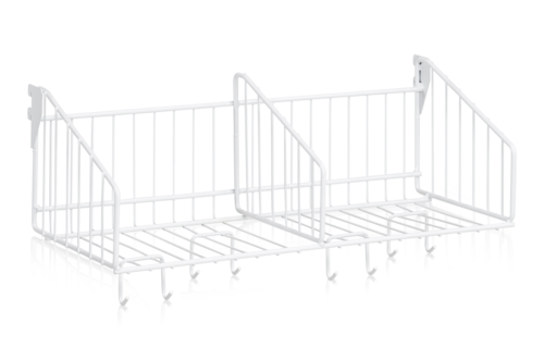 Hatthylla som passar till våra vägghängda och fristående hyllsystem. Enkel att höjdjustera. Hatthyllan har två rymliga fack som passar bra till exempelvis vantar, mössor och väskor, samt två dubbelkrokar under varje fack.