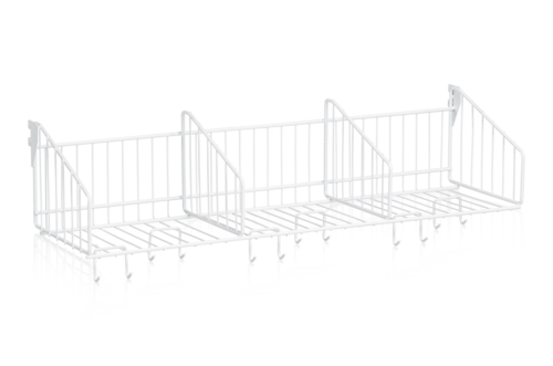 Hatthylla som passar till våra vägghängda och fristående hyllsystem. Enkel att höjdjustera. Hatthyllan har tre rymliga fack som passar bra till exempelvis vantar, mössor och väskor, samt två dubbelkrokar under varje fack.