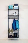 Skohylla som passar våra vägghängda och fristående hyllsystem. Enkel att höjdjustera. Skohyllan har tillhörande dropplåt som samlar upp grus och smuts, samt två rymliga fack för flera par skor.