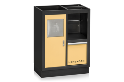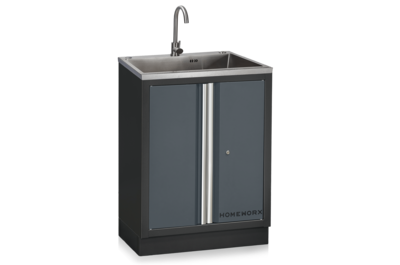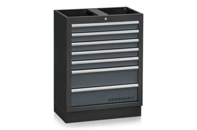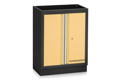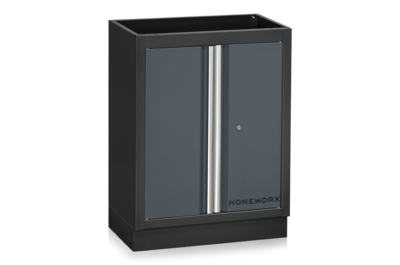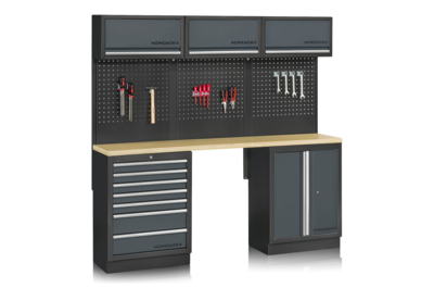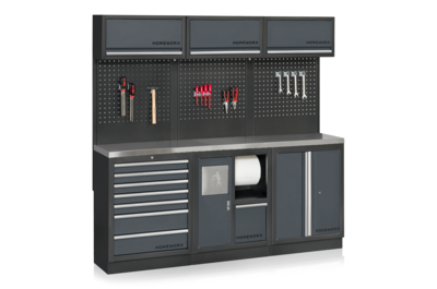 Placera alla delar framför väggen där inredningen ska monteras. Alla skåp, utom högskåpet, levereras färdigmonterade. Fäst pelarna (U-profiler) baktill i underskåpen med de medföljande skruvarna. De smala pelarna monteras i ytterkanterna, medan de bredare monteras mellan två verktygstavlor och underskåp. Antalet breda pelare varierar beroende på hur många skåp och paneler som ingår i din inredning.