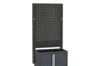 Hurtsar, underskåp och överskåp levereras monterade och byggs sedan ihop med de perforerade panelerna och arbetsbänken.
