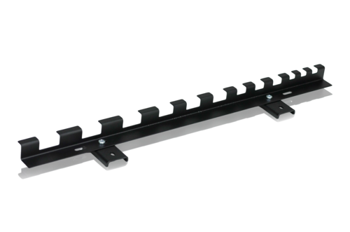 Svartlackerad ringnyckelhållare. Ringnyckelhållaren passar vår garageinredning med spårpanel som har en aluminiumskena för upphängning av tillbehör, perfekt för att utöka förvaringsmöjligheterna i såväl garage som verkstad. Plats för upphängning av 12 ringnycklar.