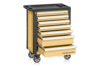 De sju lådorna har kullagrade expansioner och kan enkelt låsas med en centrallåsning. Vagnen har fyra hjul, varav ett hjulpar är fast och ett par är svängbart men som kan låsas vid behov. Ergonomiska handtag gör förflyttningen smidig och en smart toppskiva ger avlastningsmöjligheter. Vagnen har en robust konstruktion med påkörningsskydd på alla hörn och sidorna är försedda med perforeringar för verktygskrokar. Perforeringarna har hålavstånd c/c 38 mm och hålbild 9x9 mm.