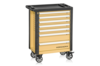 De sju lådorna har kullagrade expansioner och kan enkelt låsas med en centrallåsning. Vagnen har fyra hjul, varav ett hjulpar är fast och ett par är svängbart men som kan låsas vid behov.