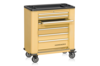 Vagnen har en robust konstruktion men är stilsäker i sin gulbeigea och svarta design, vilket ger ett tilltalande intryck i varje verkstad, förråd eller garage.