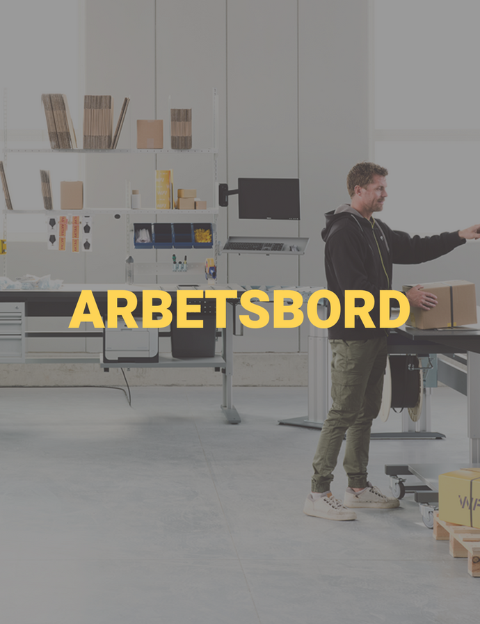 Vårt sortiment av arbetsbord är brett och sträcker sig från manuella, fasta varianter till motoriserade och mer flexibla lösningar. Vilken typ som passar bäst för smarta logistikflöden beror på arbetsplatsens behov – här är både manuellt och motoriserat höjdjusterbara alternativ aktuella. För att hitta rätt lösning kan du dyka ner i vår bordsguide, testa att bygga ditt unika bord i vår konfigurator The Yelper eller kontakta vårt säljteam!