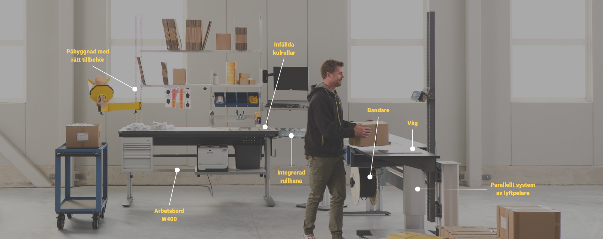 Om det är något vi kan skryta med att vi verkligen kan är det logistik. Varje dag arbetar vi med att effektivisera arbetsflöden och bygga unika lösningar för att våra kunder ska kunna packa fler paket och hantera mer gods. Jobba smartare helt enkelt. Vi skapar framtidens intelligenta arbetsplatser för professionella miljöer genom teknisk innovation, bred kapacitet och omfattande kompetens. Och när vi skapar arbetsstationer för logistikbranschen utgår vi givetvis alltid från hjärtat i vårt erbjudande, arbetsbordet.