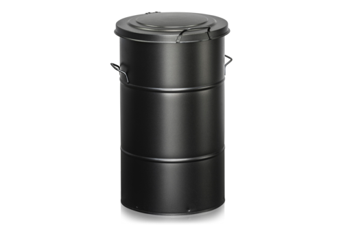 Cylinderformad avfallsbehållare. Uppfällbart lock med handtag för enkel tömning. Passar extra bra på förskolan, sjukhuset eller idrottsanläggningen. Lämplig som soptunna, behållare för förorenade och smutsiga kläder eller för brandfarligt avfall inom industri och elektronikindustrins EPA-område. Behållaren är dessutom försedd med bärhandtag för enklare förflyttning och tömning. Tillverkad av varmförzinkad stålplåt. Svartlackerad.