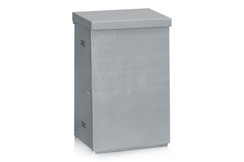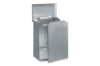 Säckhållare i galvaniserad plåt med praktiskt öppningsbart lock och framsida.